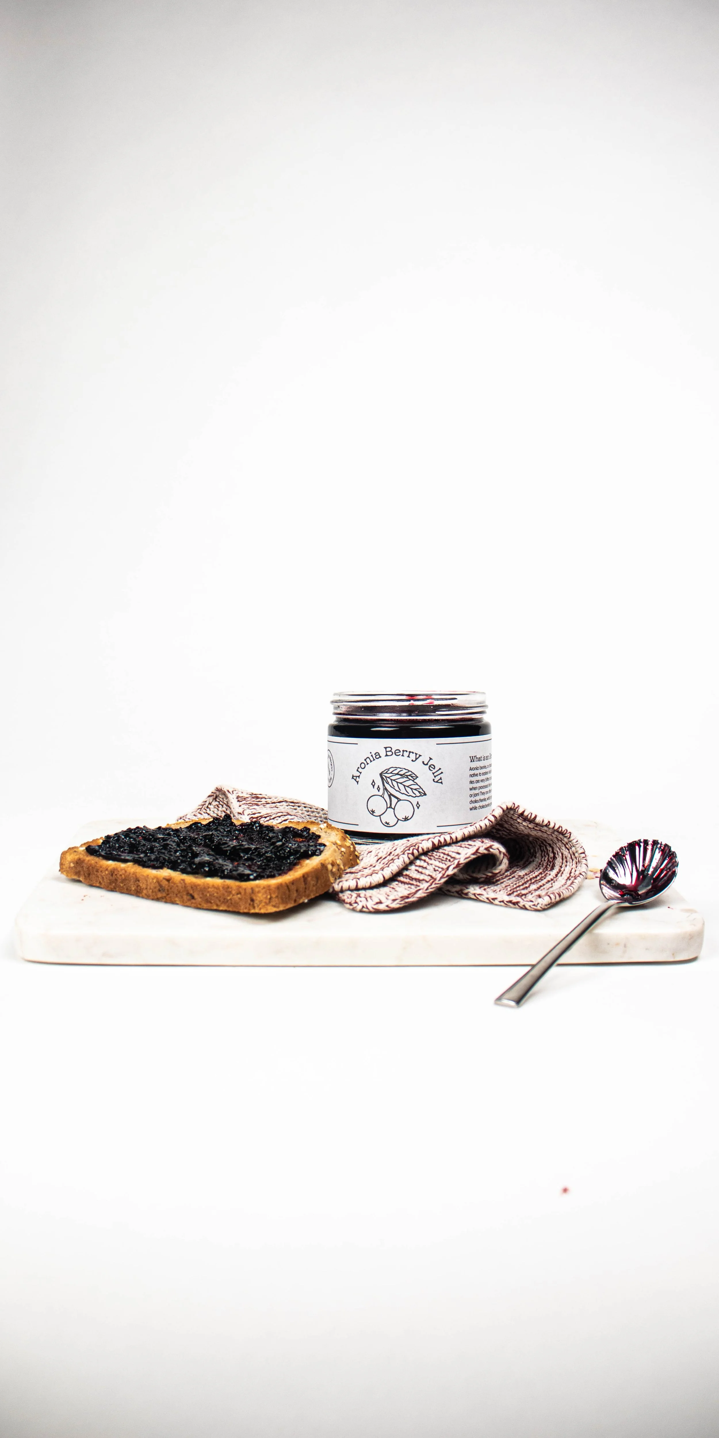 Once again, the goal of the photography was to allow the stark white background to act as a blank canvas for the jelly, since the colour is so deep that much of its nuance could be lost otherwise.